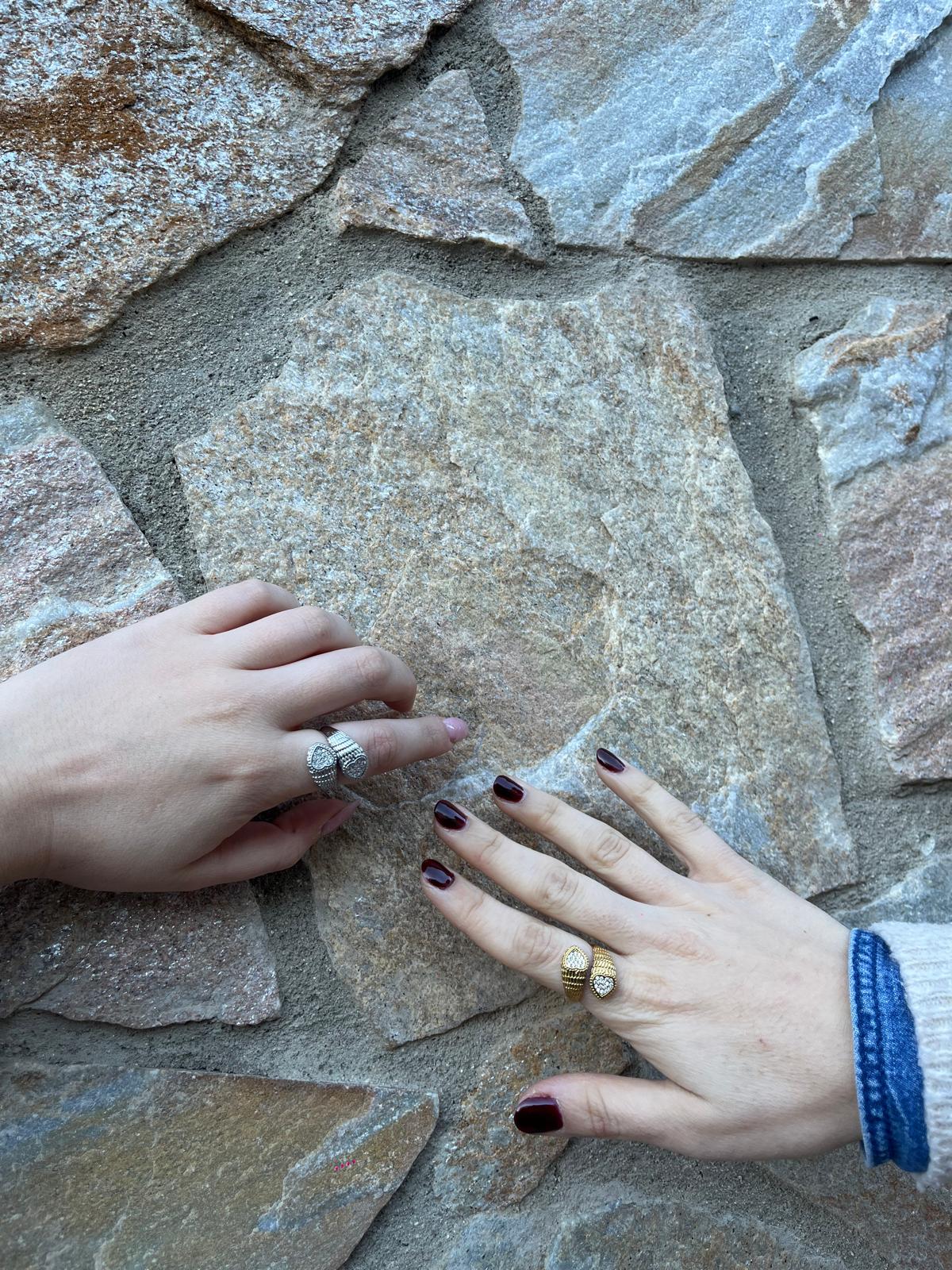 Descripción: Anillo de corazones con cristales incrustados, en dorado o plateado.
