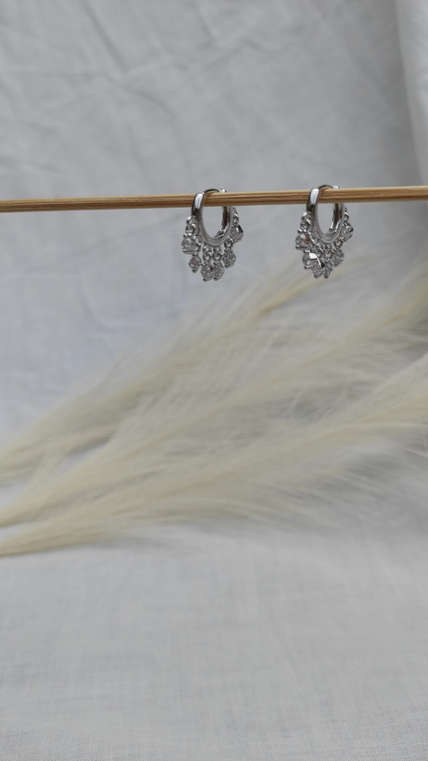 Aros de acero inoxidable con colgantes de cristalitos.