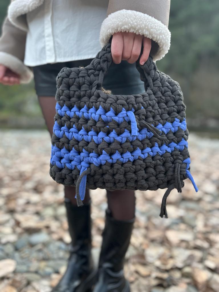 Bolso de mano gris y azul