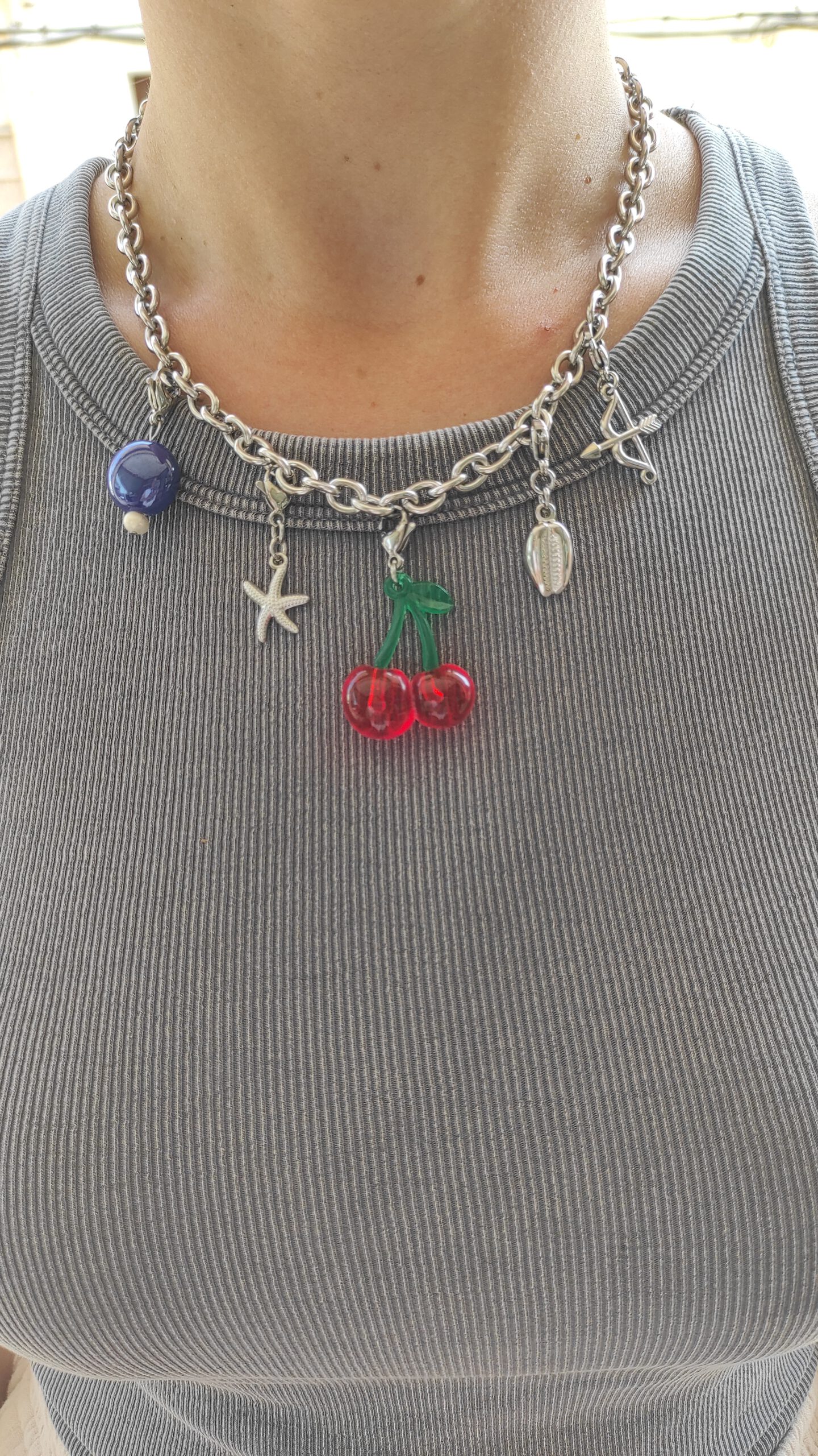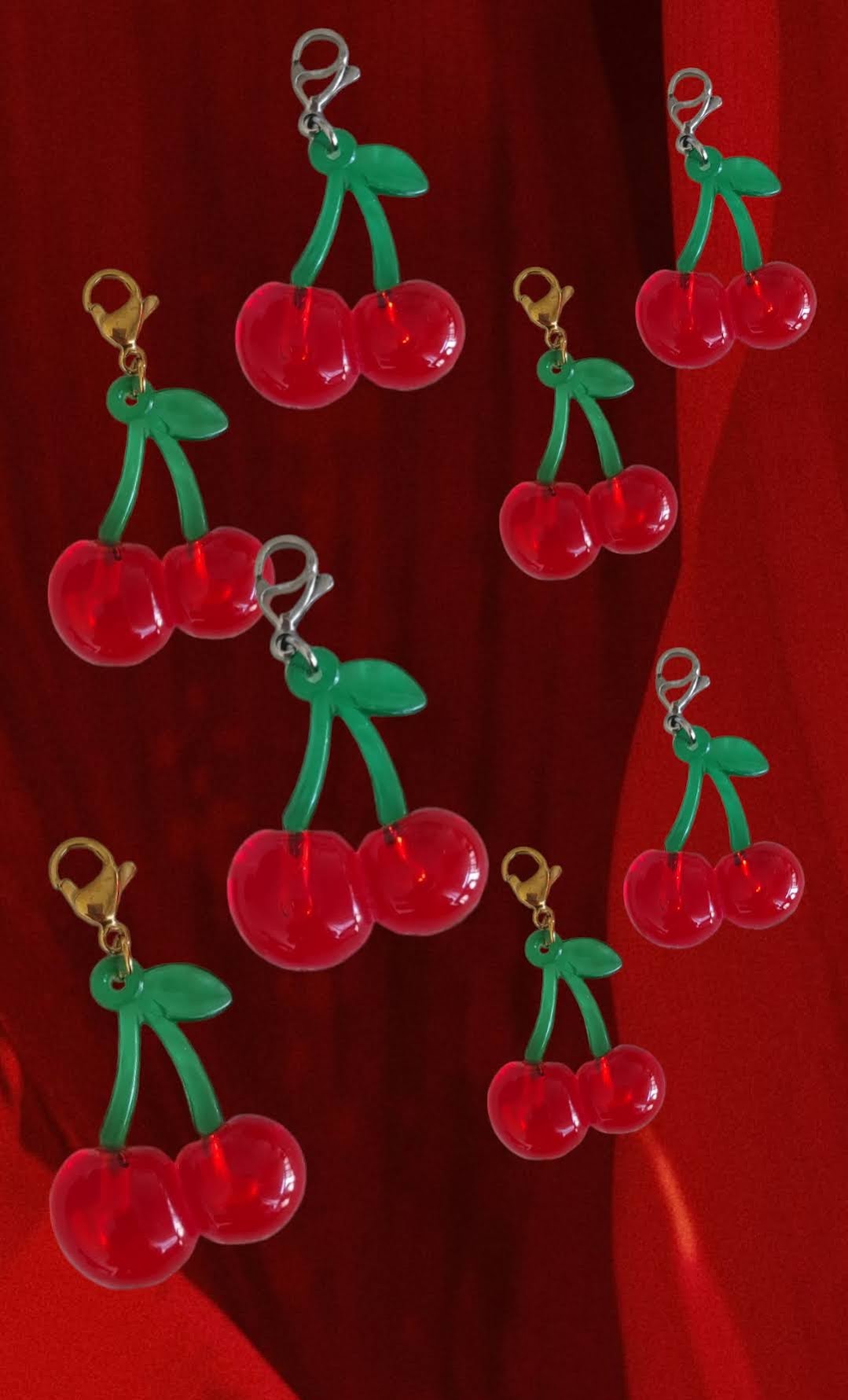 Descripción: Charm con forma de cerezas con enganche en dorado o plateado