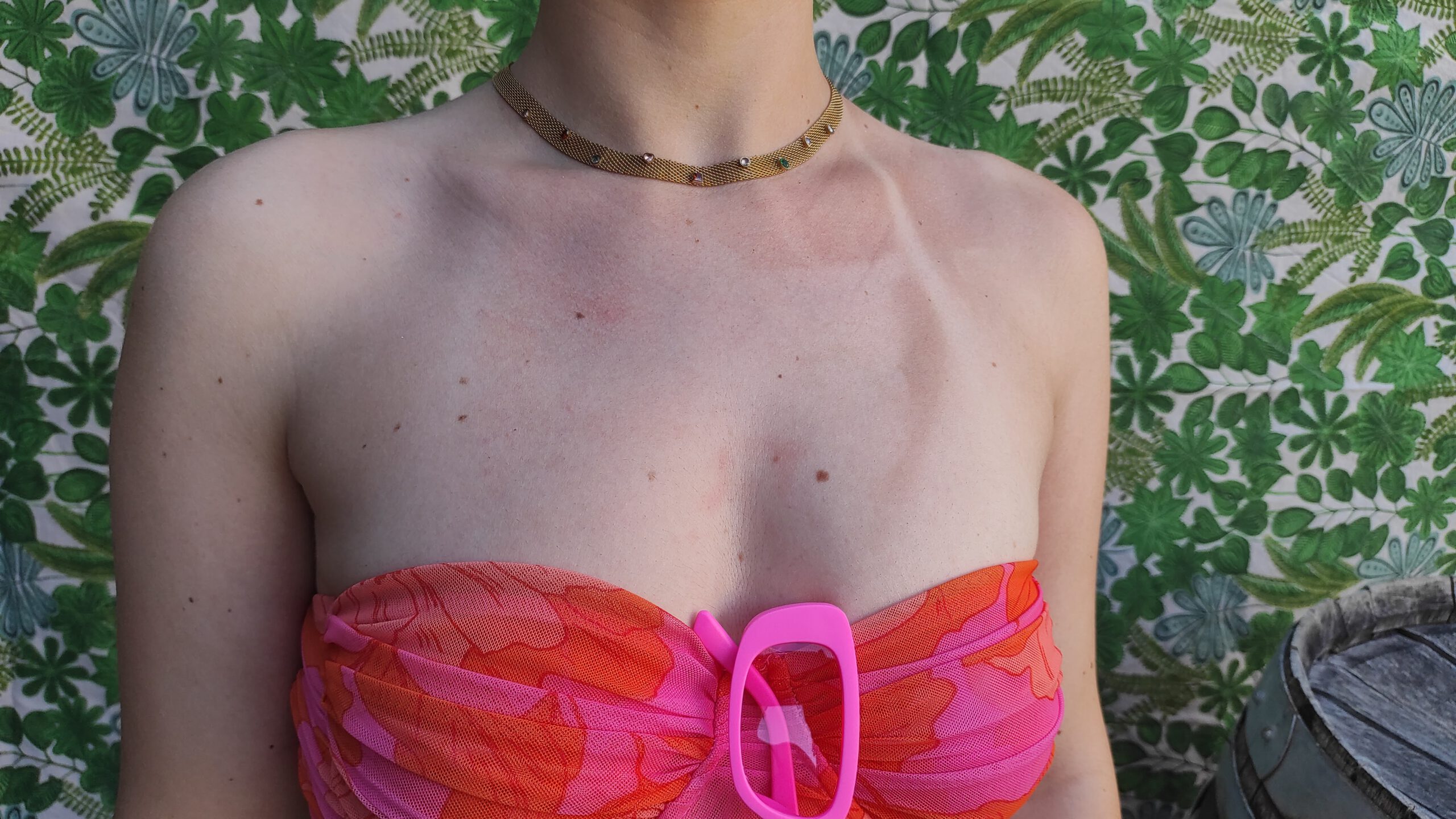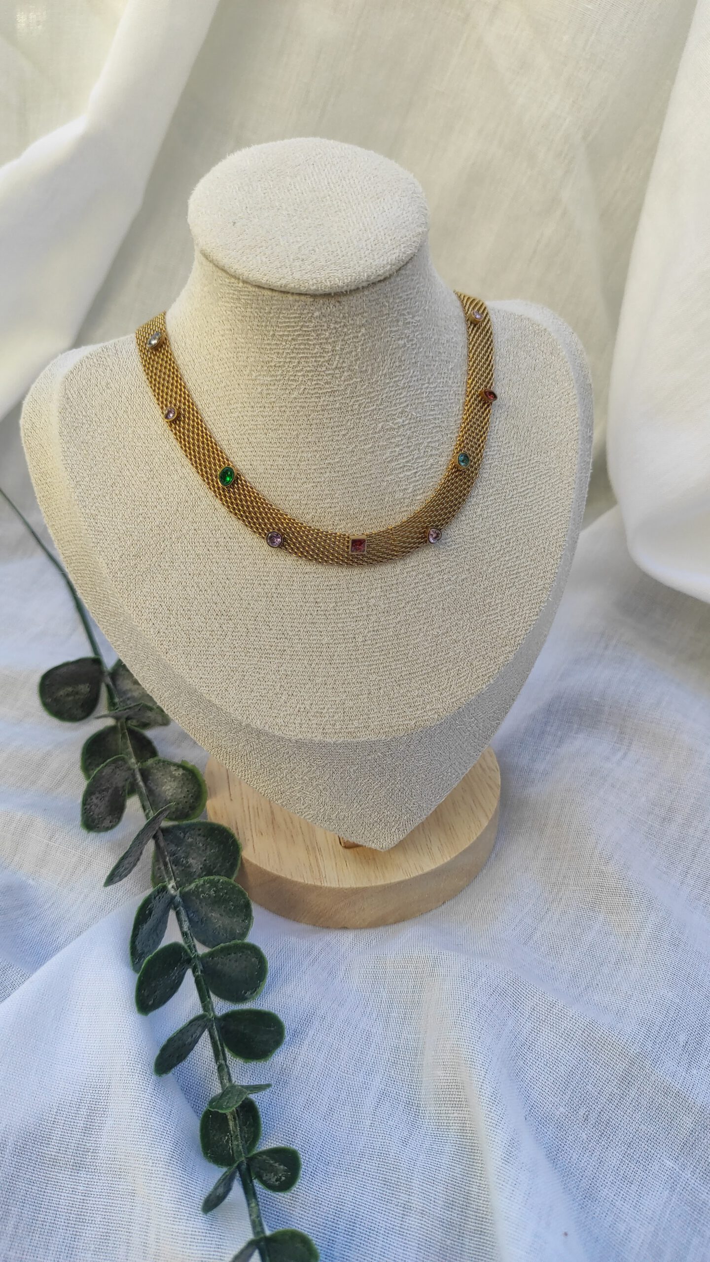 Descripción: Collar estilo choker con incrustaciones de colores.