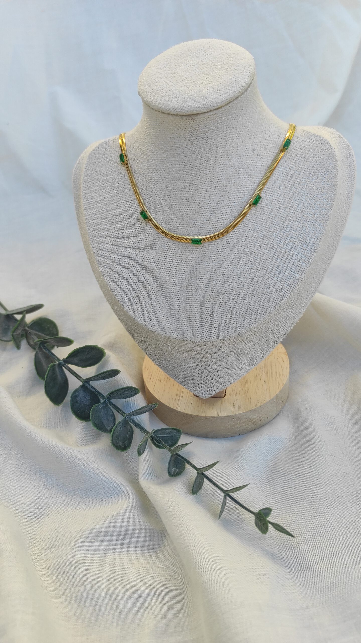 Cadena serpiente con incrustaciones en verde.Medida: 40cm + 5cm extensión.