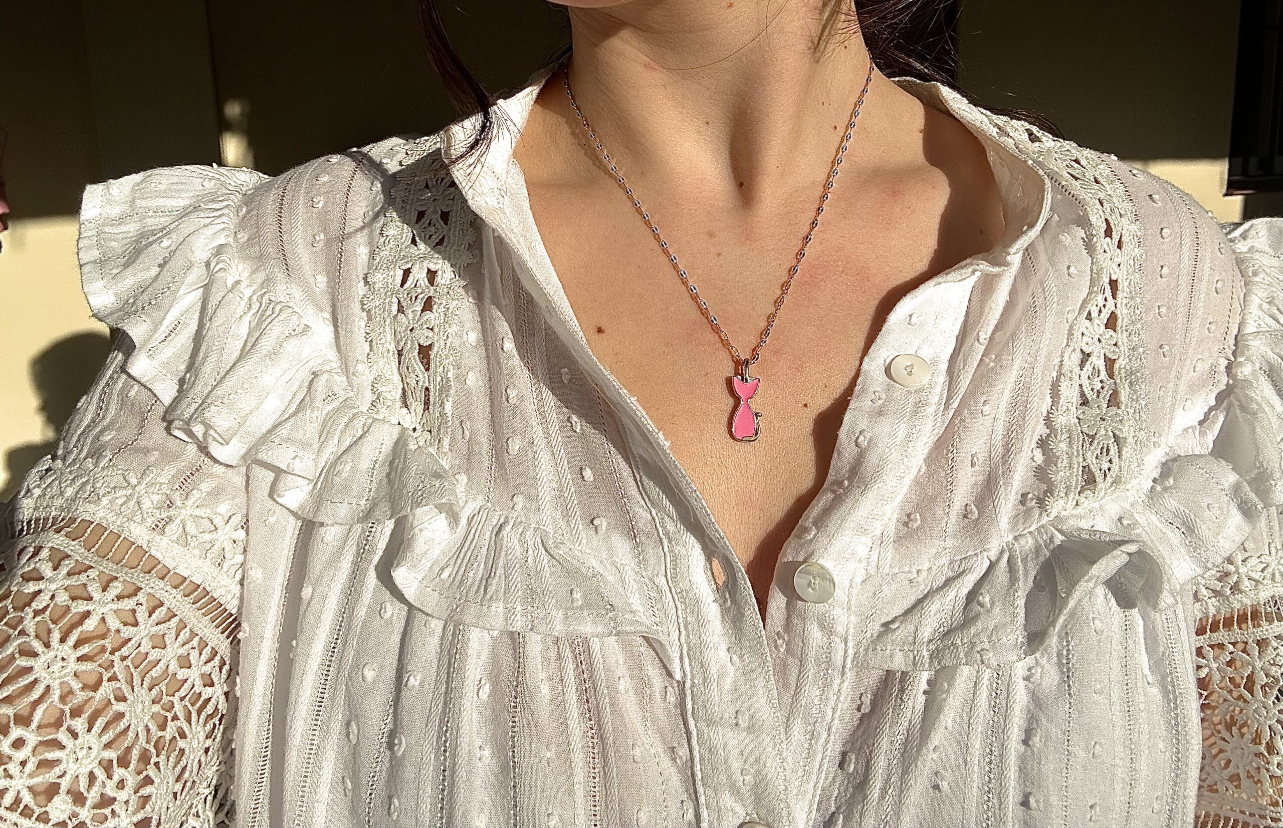 Descripción: Collar silueta de gato en color rosa.