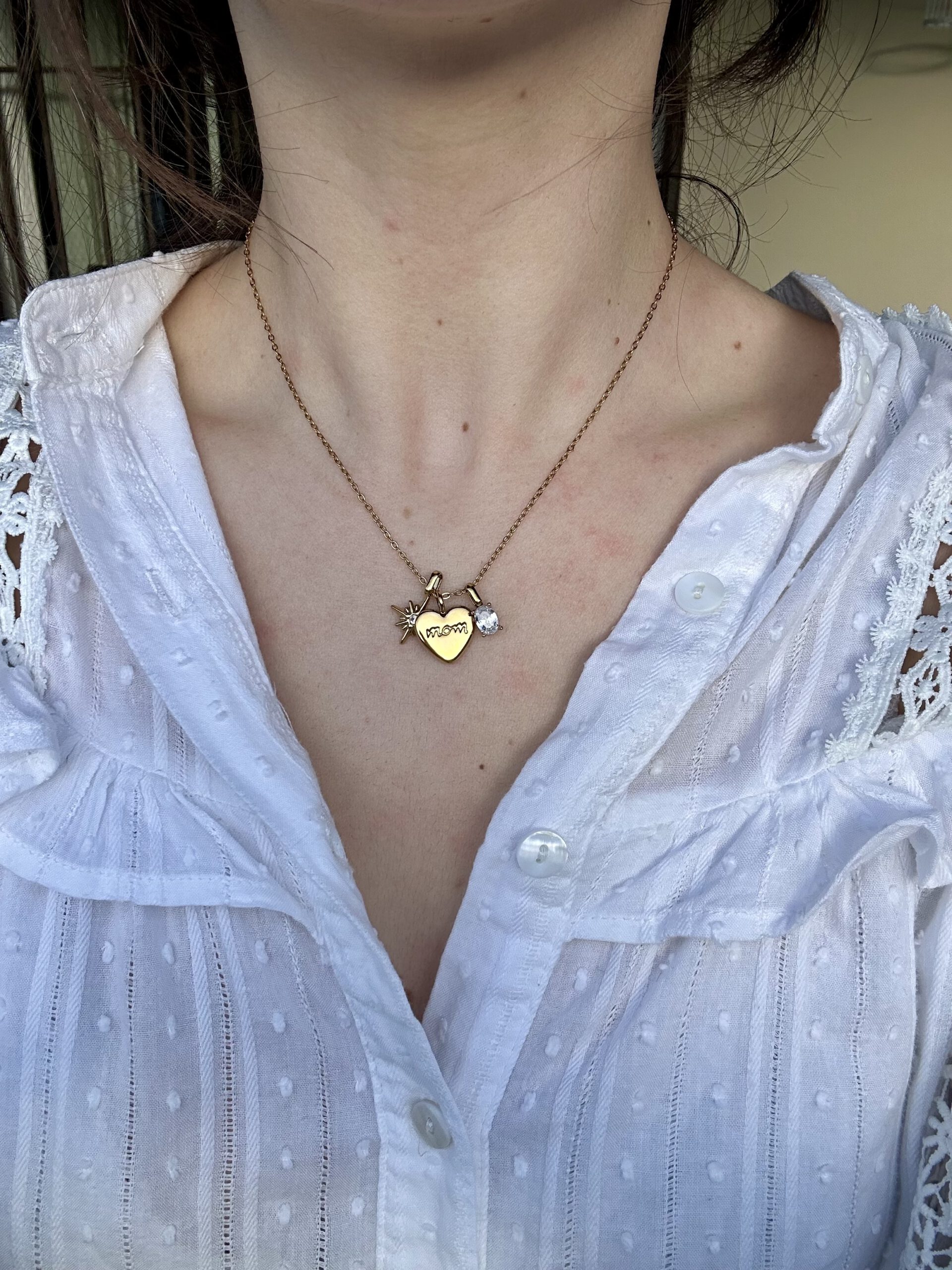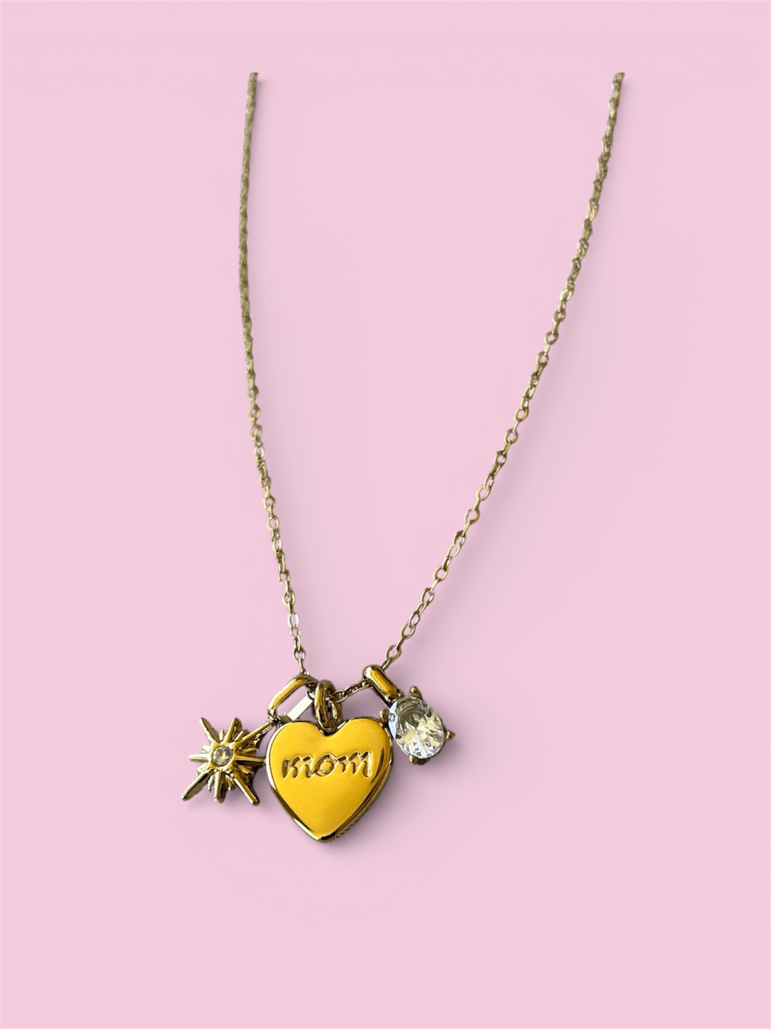 Descripción: Cadena dorada con tres charms pequeños