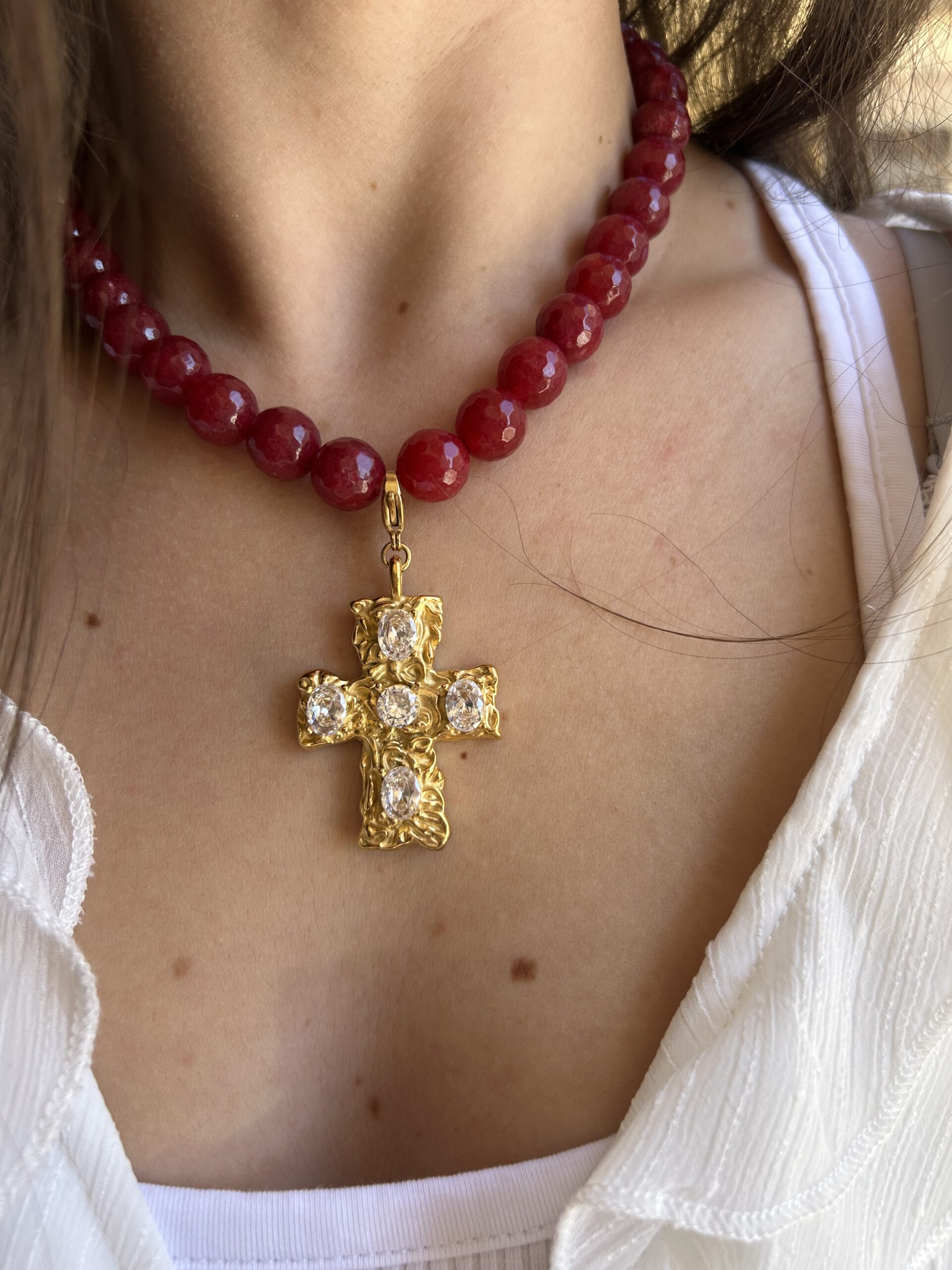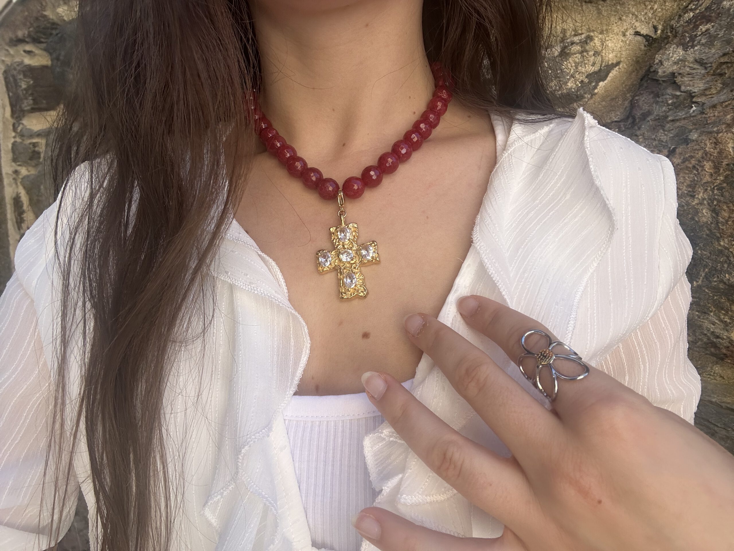 Descripción: Collar rojo con cuentas naturales.