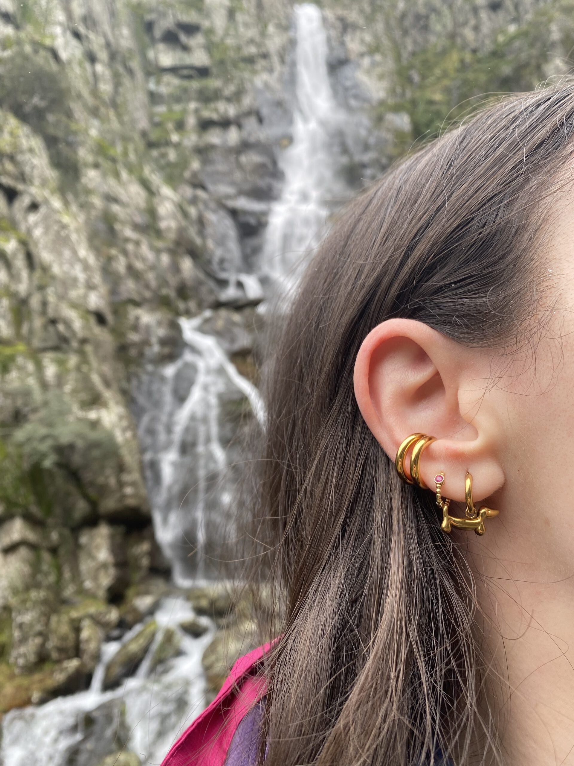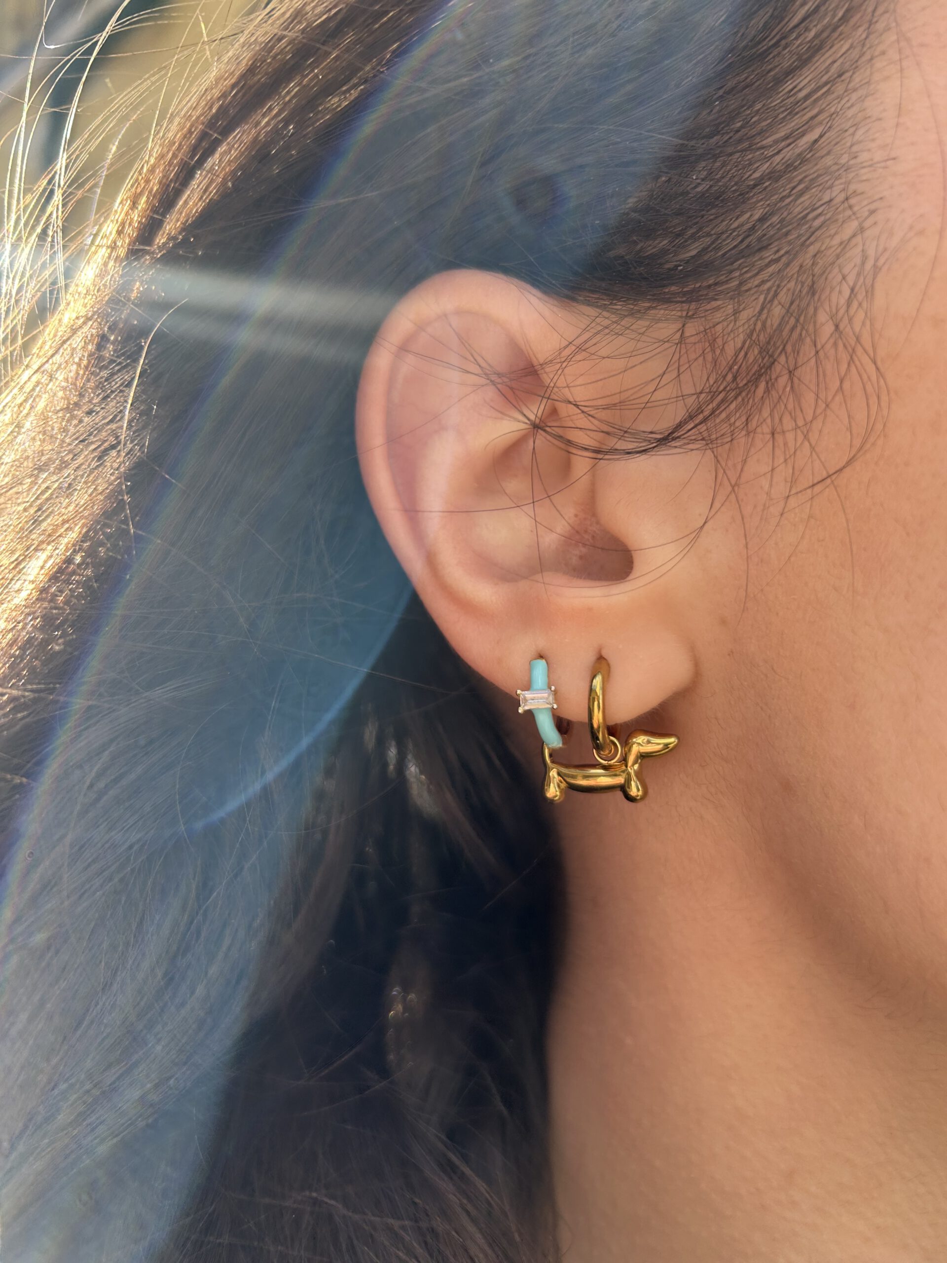 Descripción: Aritos de perro salchicha dorados.